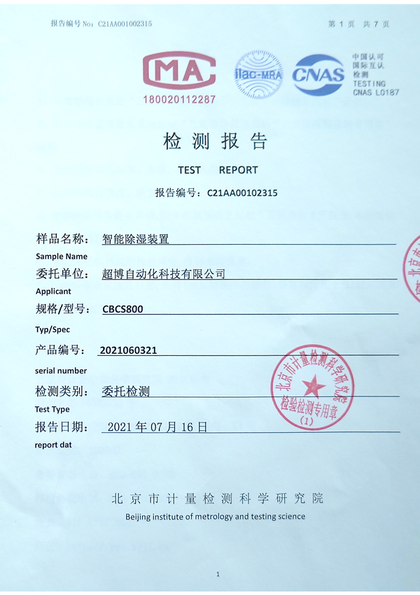 智能除濕裝置檢測報告