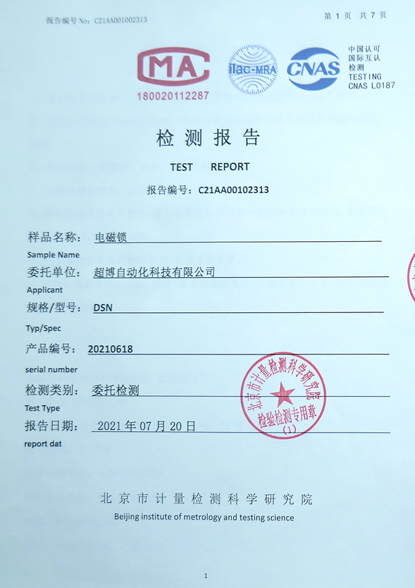 電磁鎖檢測報告